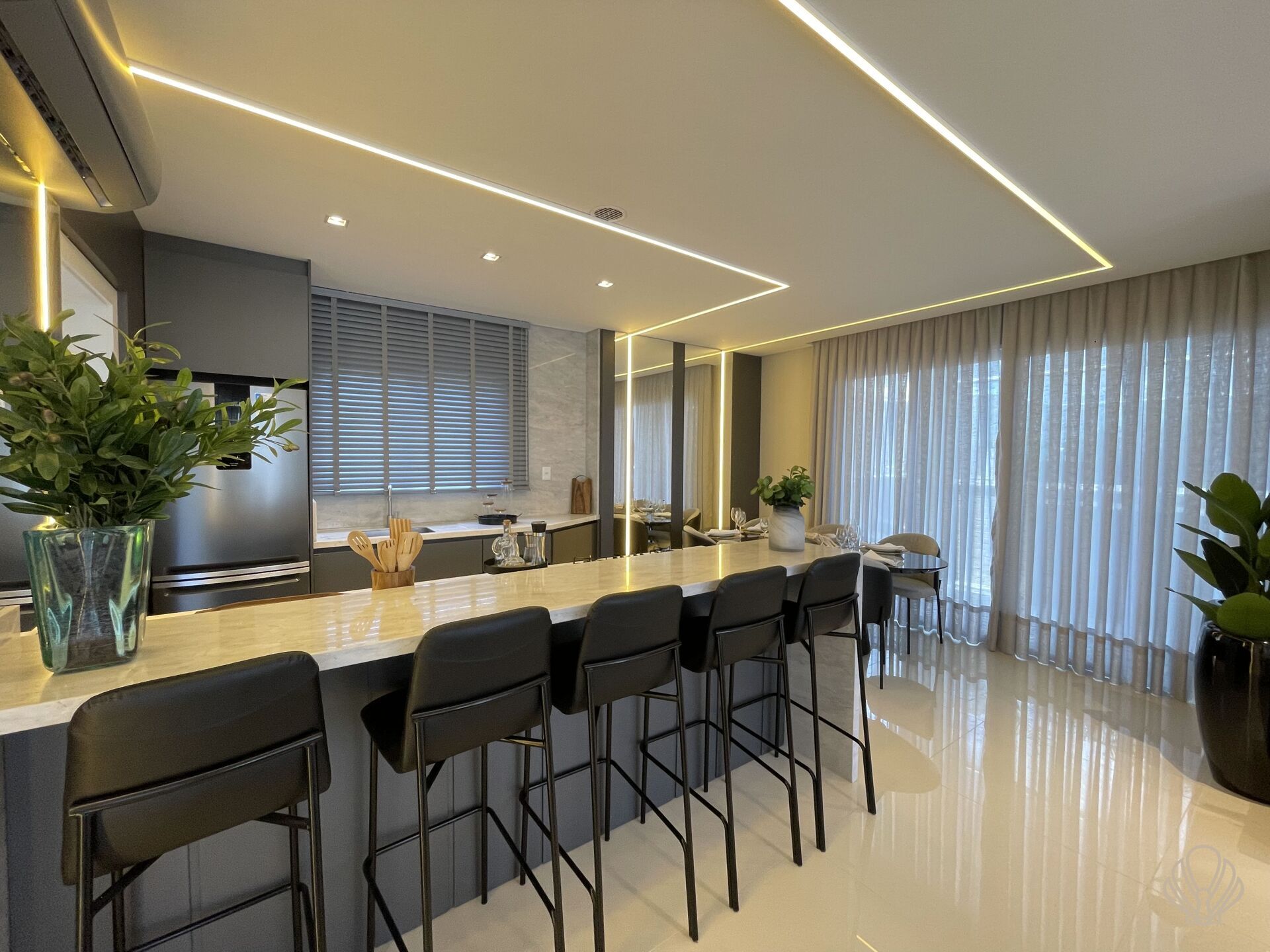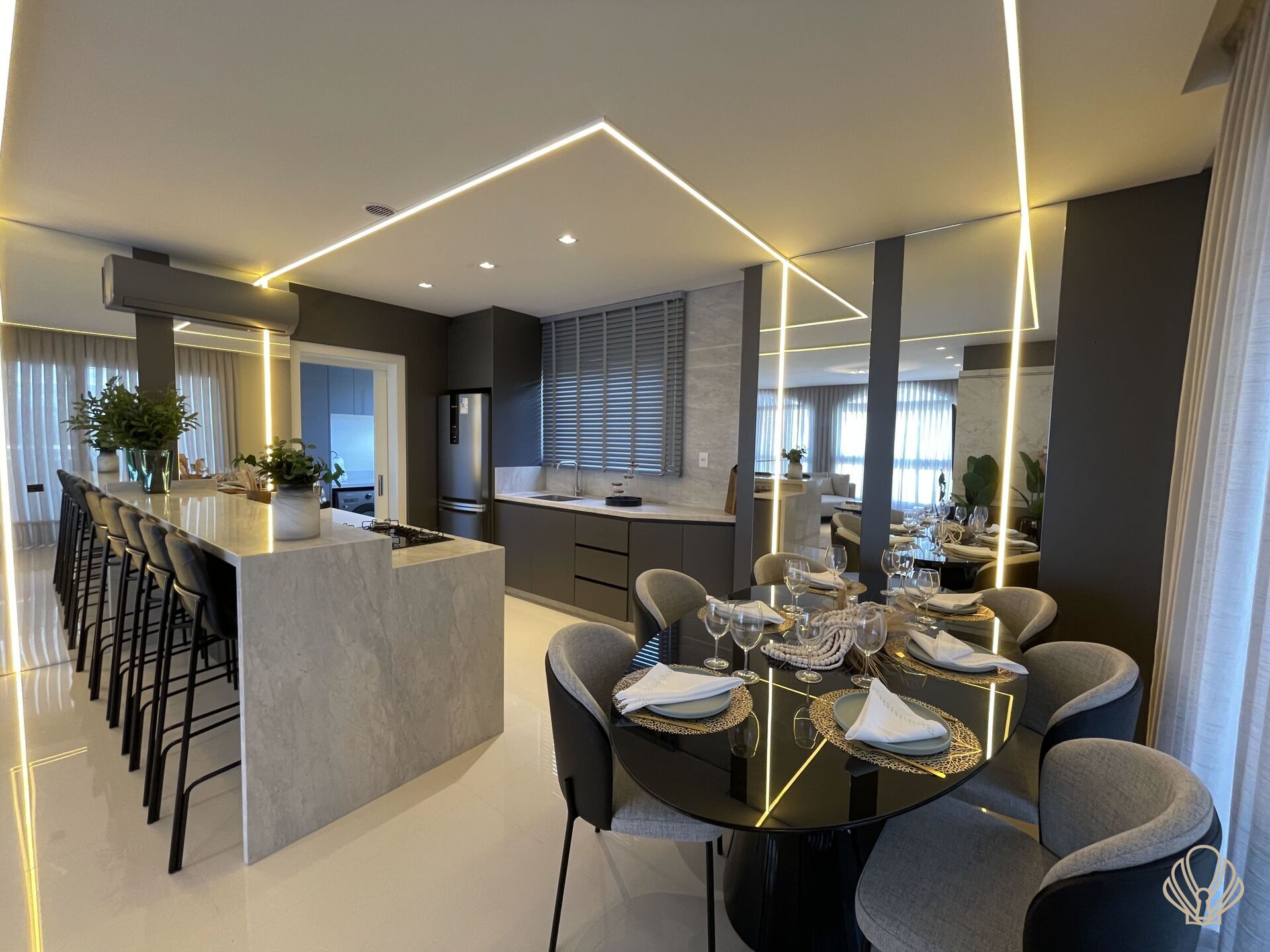 O apartamento está pronto para morara, são 240,92 m² de área privativa e 347,30 de área total, sendo 03 suítes, água quente, ar central, cozinha americana, despensa, lavabo, área de serviço, estar íntimo, área de serviço, banheiro social, living amplo integrado, churrasqueira, deck, piscina privativa, vista para o mar e 04 vagas de garagem privativa.