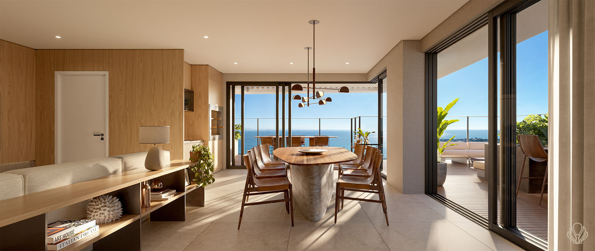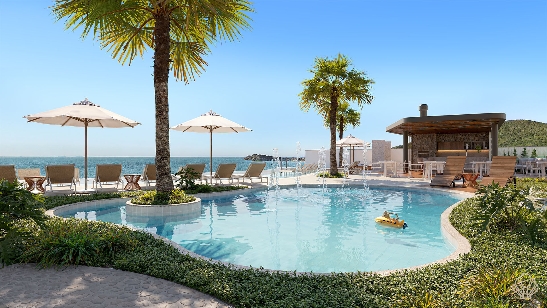 O empreendimento ainda conta com uma área de lazer completa, com mais de 2.400m², incluindo piscina com borda infinita de frente para o mar, espaços gourmet, academia e áreas de convivência que proporcionam uma experiência única todos os dias.