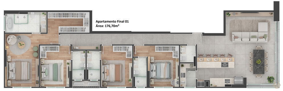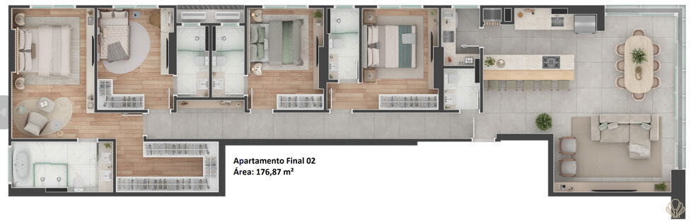- Acabamentos de altíssimo padrão: piso porcelanato em grandes formatos, infraestrutura para automação, forro rebaixado em gesso, tratamento acústico entre pavimentos e muito mais.